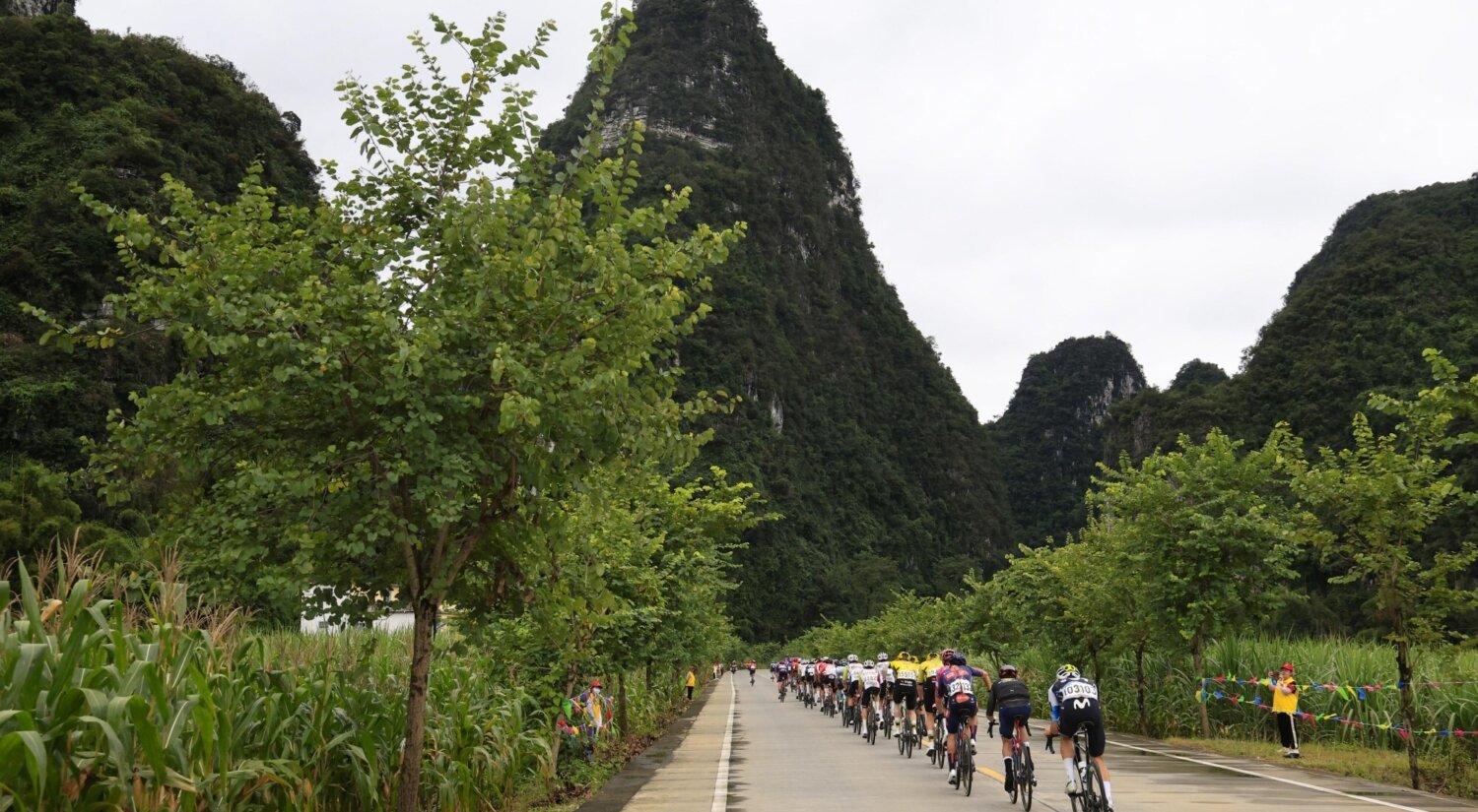 The peloton set off from rainy Chongzuo for a stage of roughly 179 kilometres over rolling terrain towards the finish in Jingxi. In the finale, the riders faced the only categorised climb of the day. Shortly after the start, a breakaway of six riders was allowed some space by the peloton.