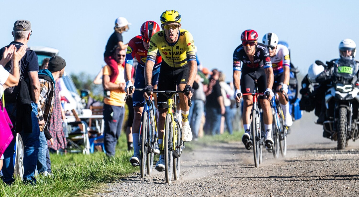 The high pace turned the race into a battle of attrition. In the finale, defending champion Laporte was the only Team Visma | Lease a Bike rider left in the front group. A compact peloton reached Tours, where several short climbs and gravel sections followed in quick succession. Meanwhile, French duo Paul Lapeira and Thibaud Gruel held a small lead over the chasers.